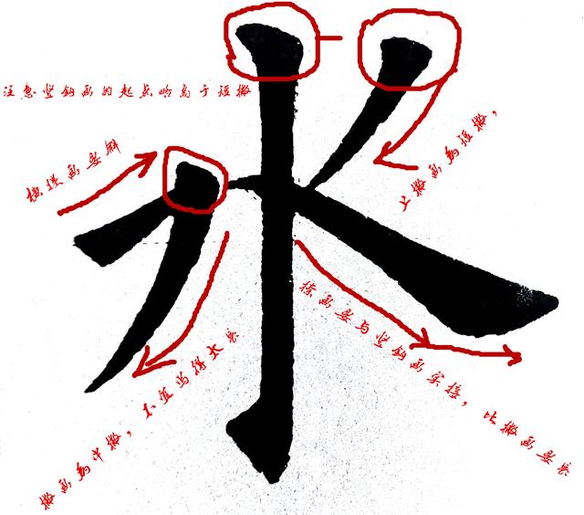 书写一个字体,笔顺有一定讲究。如果不注意书写顺序,到了行书和草书练习阶段,会非常吃力。比如书写“水”字,是先中间,后两边。而书写“火”字,刚好反过来,是先写两点,再写“人”字,写两点和“人”字的间距和位置处理很关键,两点既不能太靠上,也不能太下压。如下图书写才正确。类似这样的书写笔顺法则,可以通过硬笔书法来学习和巩固。掌握技巧后,再拿毛笔书写。